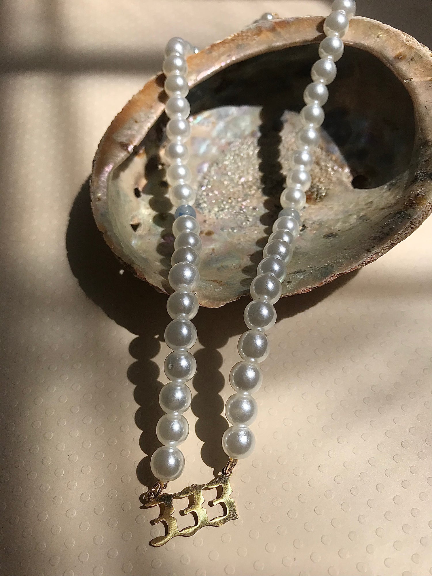 Enhance your personal style with our beautiful pearl necklace featuring an angel number charm. This stunning piece showcases lustrous pearls of the finest quality and a delicate angel number charm, handcrafted to perfection. Embrace the symbolism and beauty of this unique accessory and elevate any outfit.