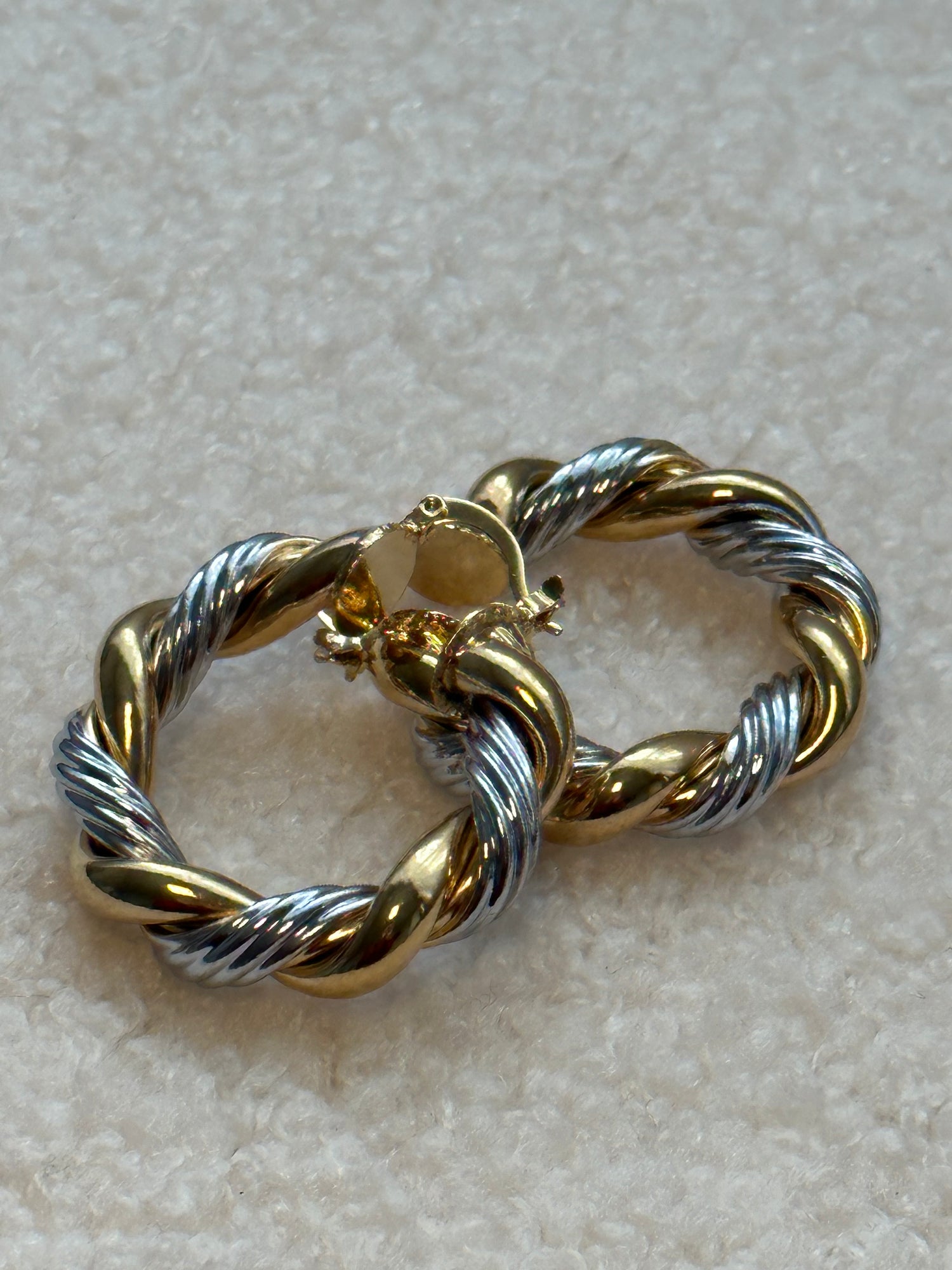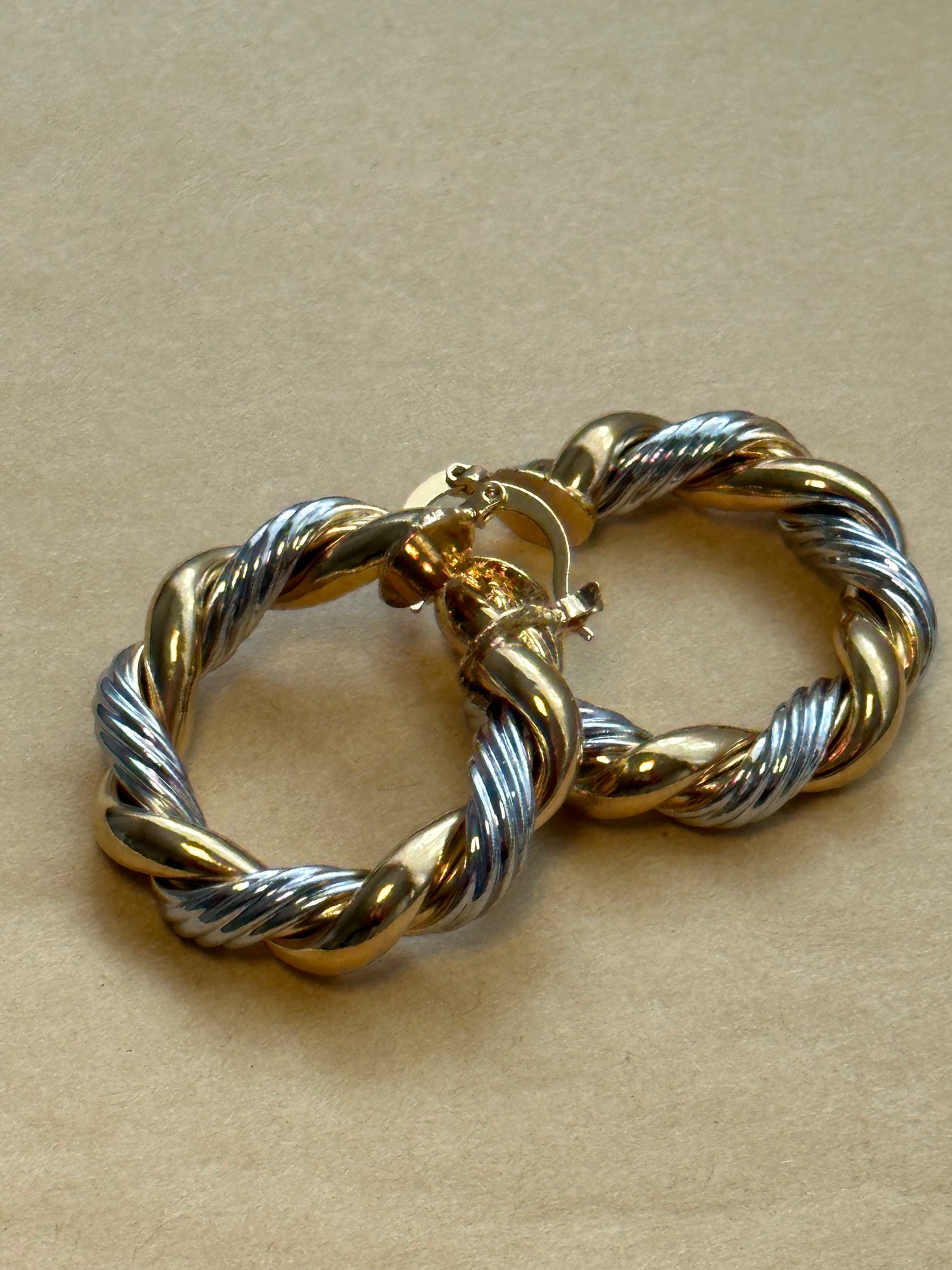 Large sized hoops. Mixed metals.