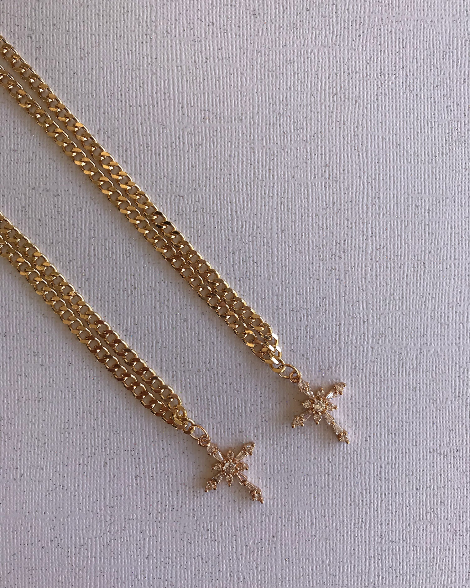 18k gold filled Cuban link chain with gold plated CZ detail.