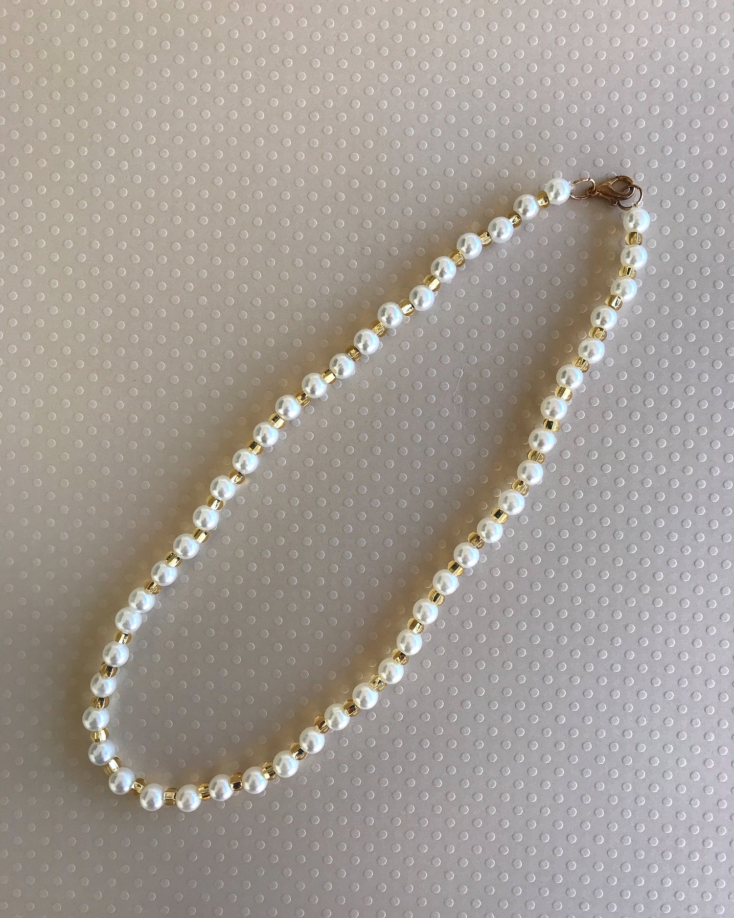 Founder Favorite necklace featuring high-quality faux pearls and golden spacer beads