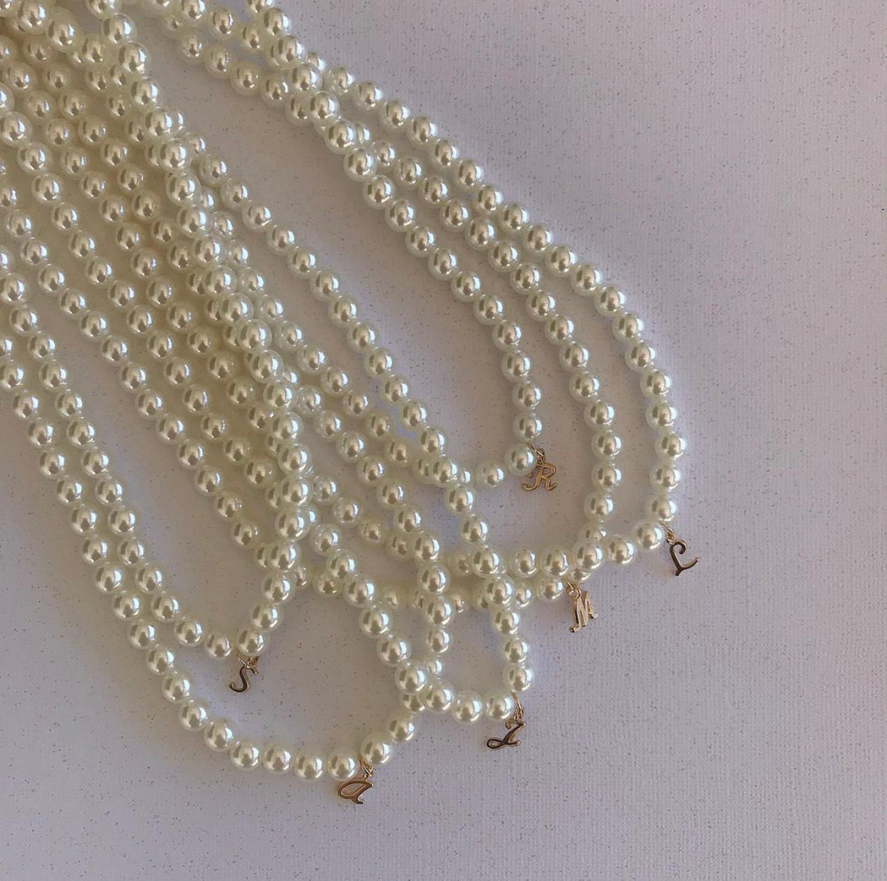 High quality 8mm faux pearls with gold plated initial.