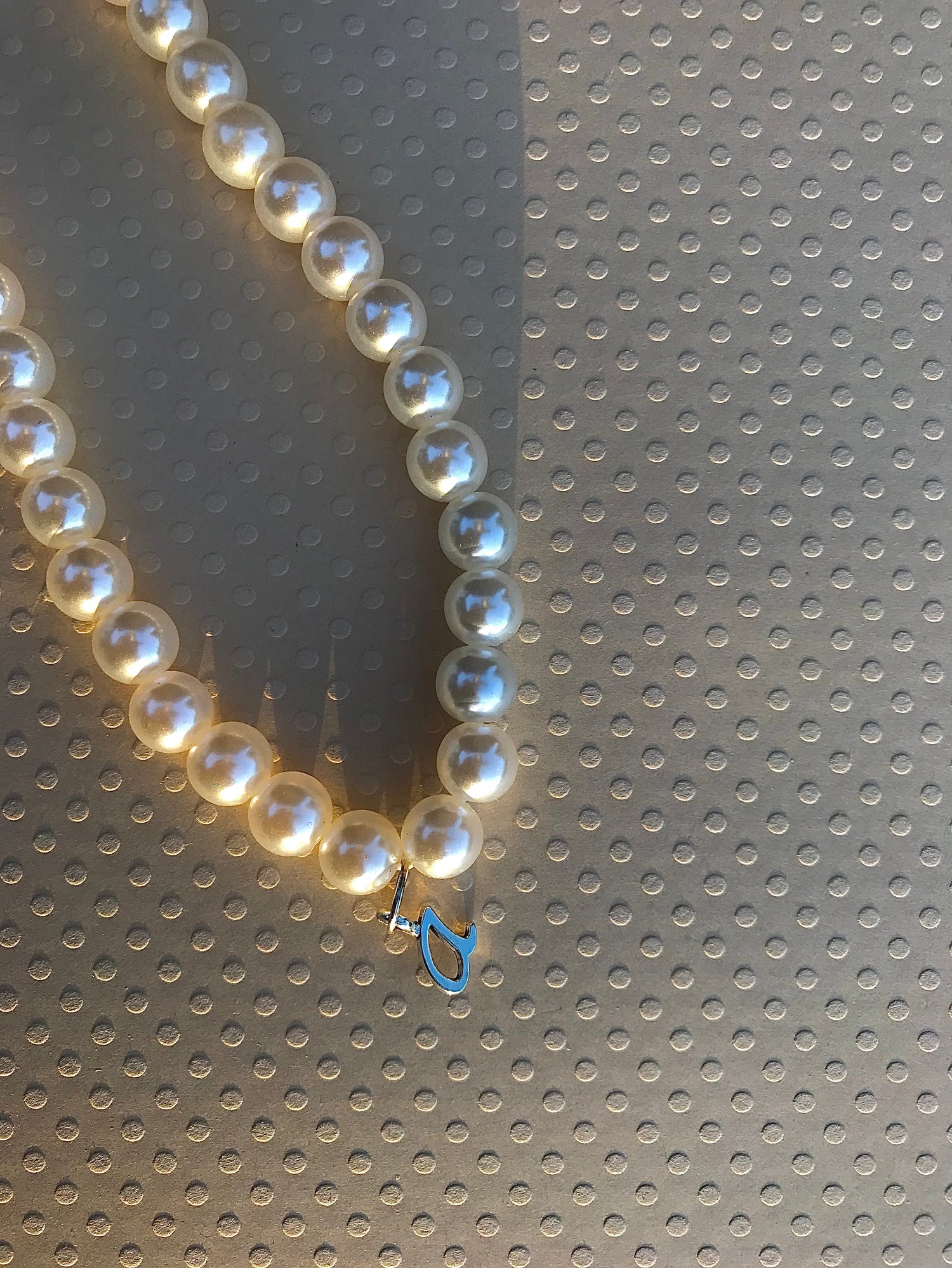 High quality 8mm faux pearls with silver letter.