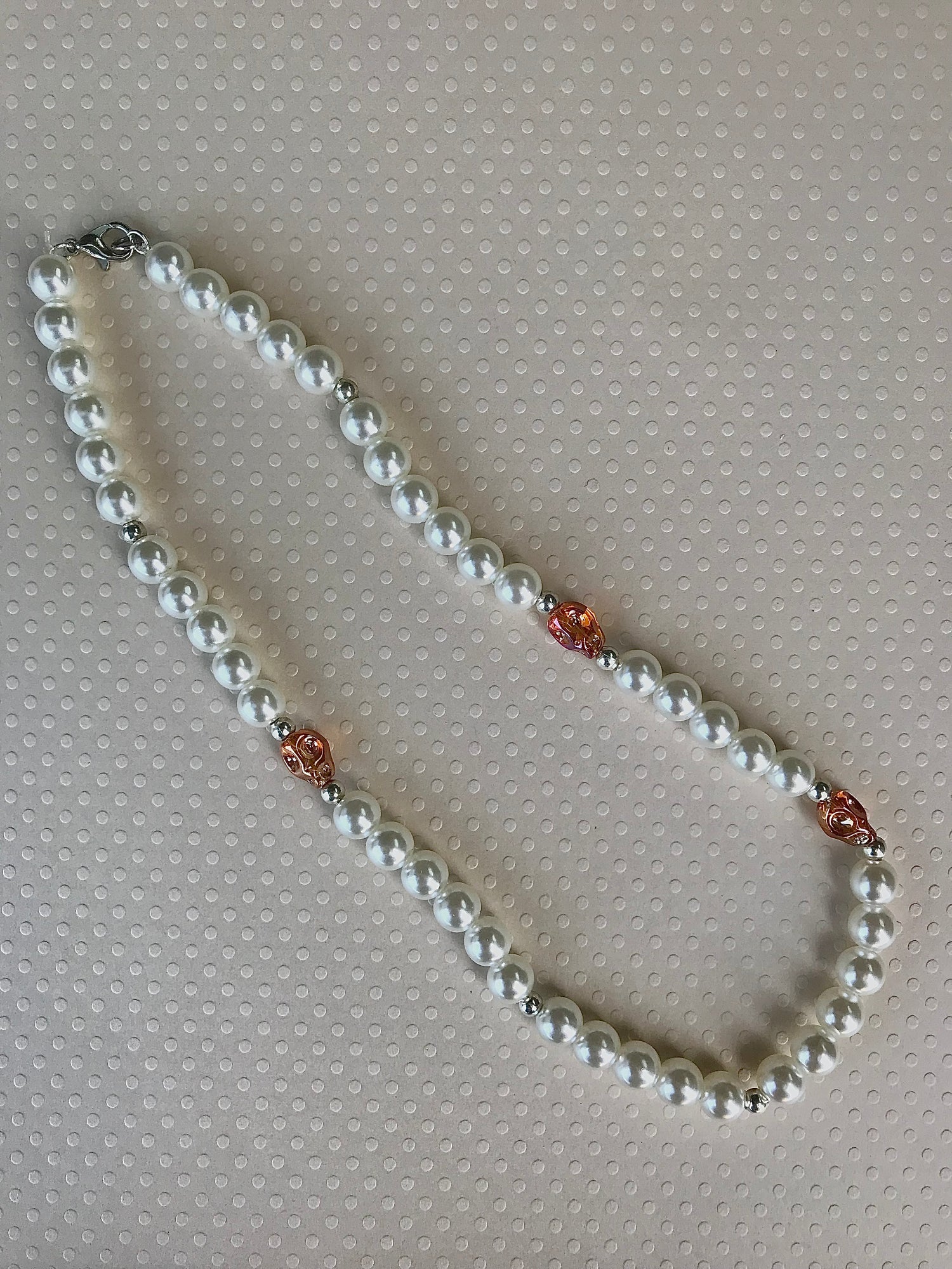 Elevate your jewelry collection with the White Pearl Skull Necklace. This unique piece features delicate white faux pearls hand strung to create a sophisticated look, paired with a silver-tone skull charm for a touch of edgy style. The white pearls and the silver-tone chain complement each other beautifully, creating a versatile and timeless piece. This necklace is perfect for those who love to blend classic beauty with a touch of edge.